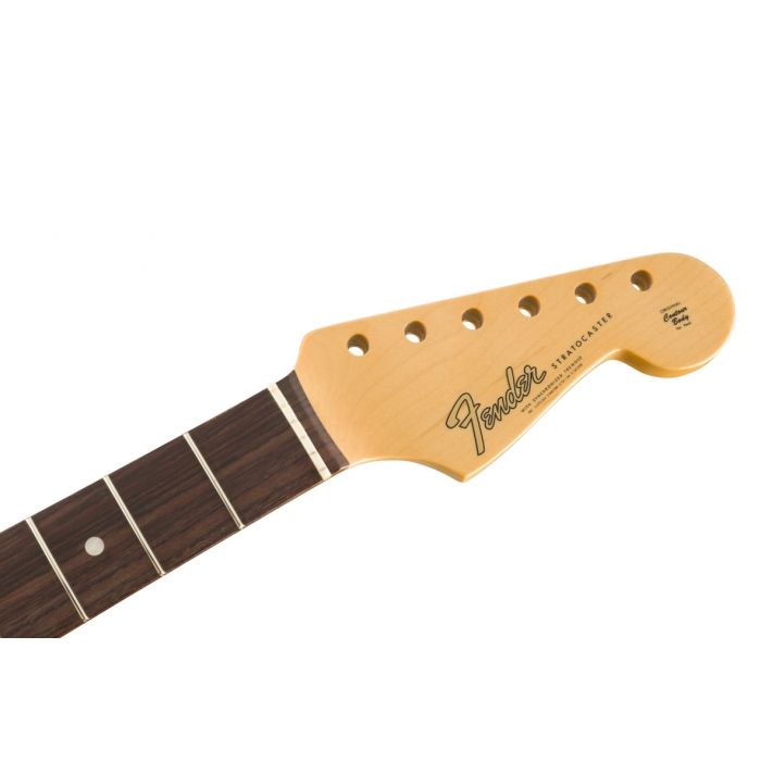 Crafted at Fender's Corona, Calif. manufacturing facility, this genuine vintage-style Fender Stratocaster guitar neck features a thick "C"-shaped profile and 9.5"-radius round-lam rosewood fingerboard with 21 vintage-tall frets.